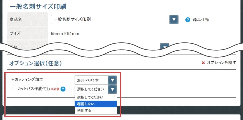 カット位置付近に文字を配置するデザインや、カット位置がデザインのフチに近い場合はご注意ください。