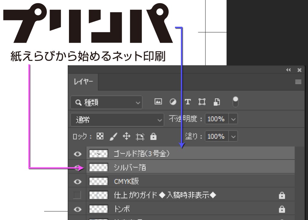プリンパがオススメする箔押し加工データの作成方法をご案内します。